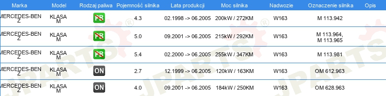Informacje o części