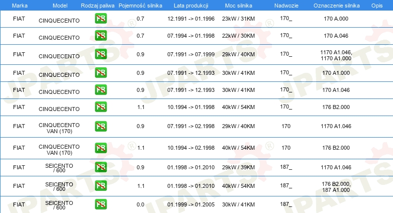 Informacje o części