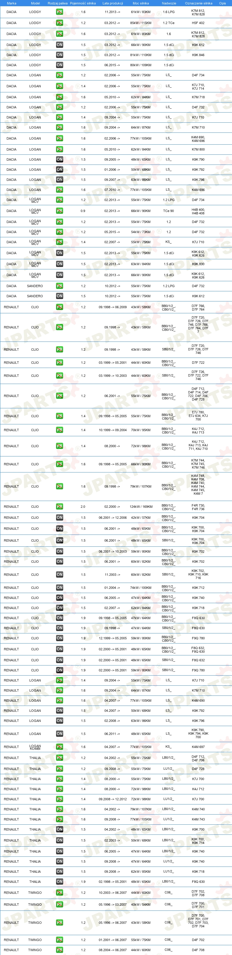 | Ograniczenia producenta: | TRW |