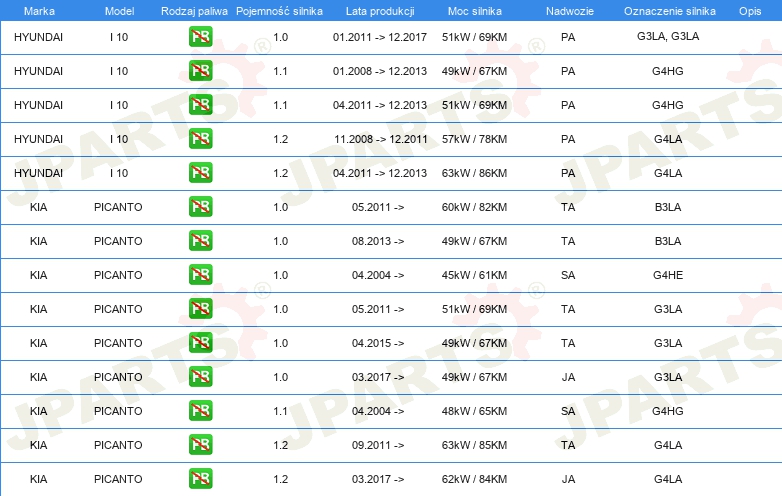 | Strona zabudowy: | Oś przednia |