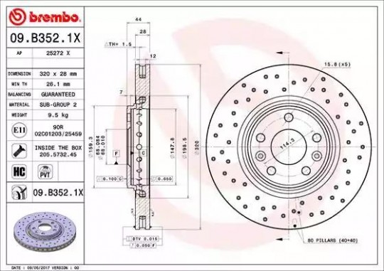 | Typ tarczy hamulcowej: | perforowany / wentylowany |