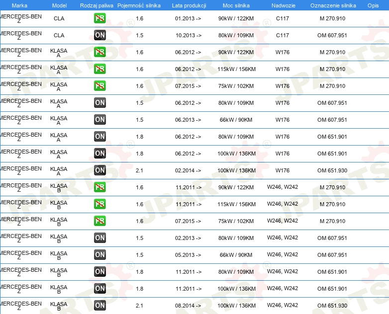| Strona zabudowy: | Oś tylna |