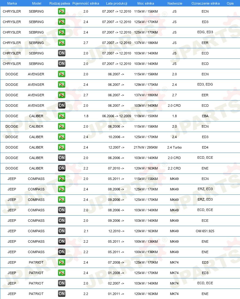 | Strona zabudowy: | Oś przednia |