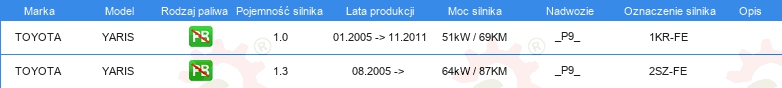 Dodatkowe informacje katalogowe