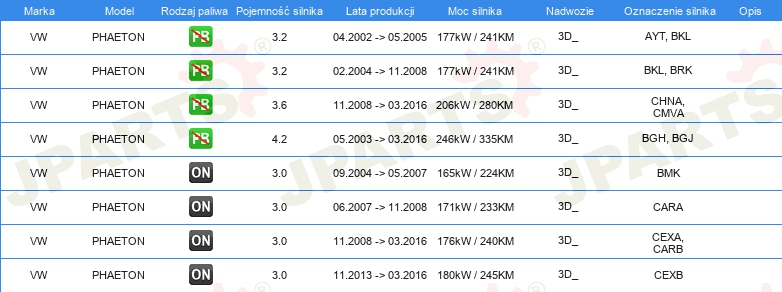 | Ograniczenia producenta: | TRW |