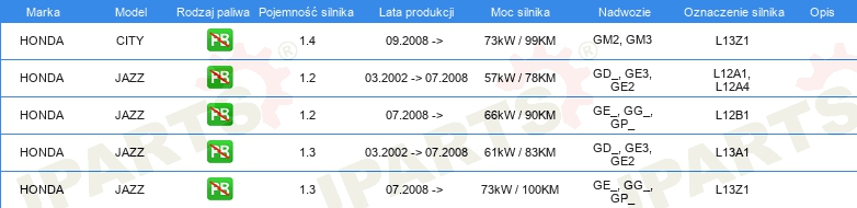 Informacje o części