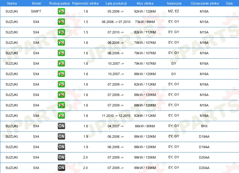 | Ograniczenia producenta: | NISSIN |