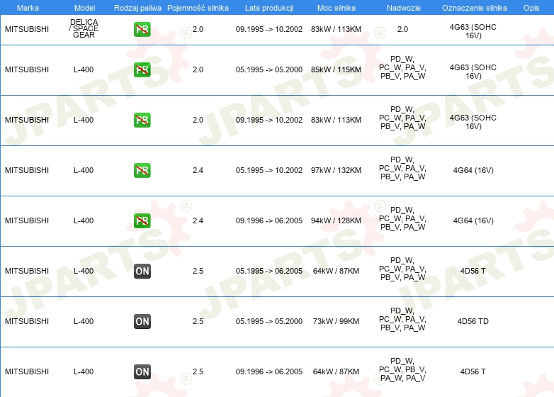 | Strona zabudowy: | oś przednia po obydwu stronach |