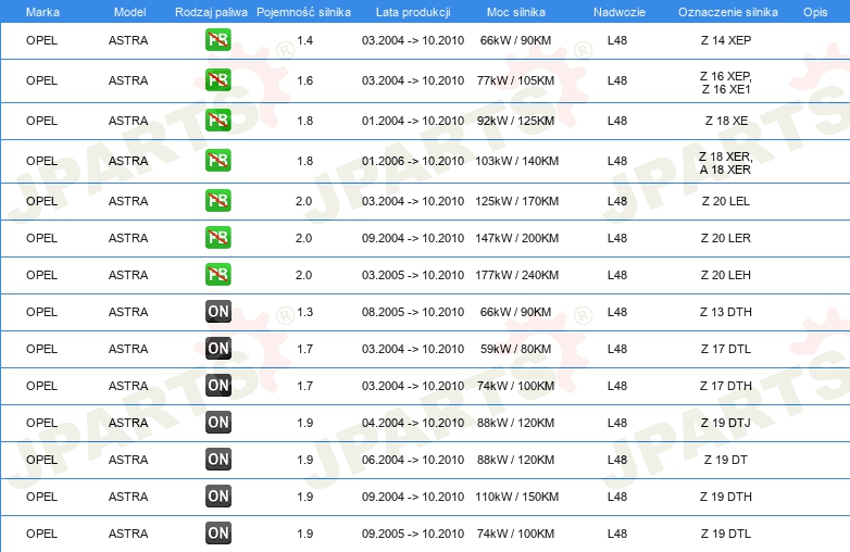 | dla producentów przekładni kierowniczych: | TRW |
