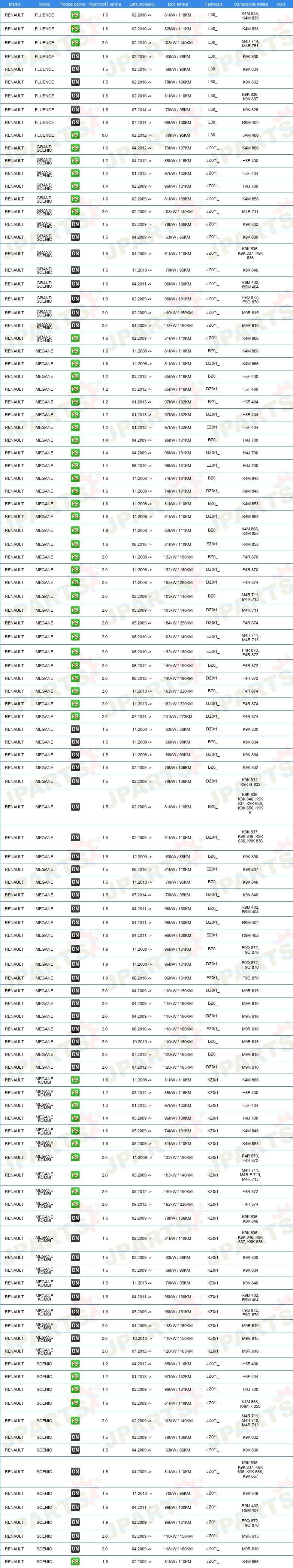 | Pojazd z kierownicą po lewej /prawej stronie: | dla pojazdów z kierownicą z lewej / prawej strony |