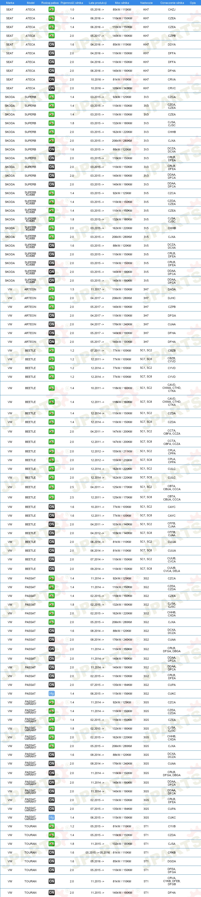 | Pojazd z kierownicą po lewej /prawej stronie: | dla pojazdów z kierownicą z lewej / prawej strony |