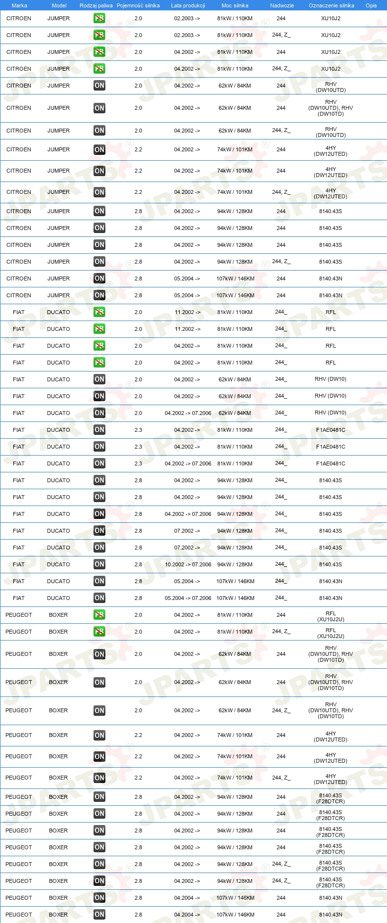 | Wyposażenie pojazdu: | dla pojazdów ze wpomaganiem układu kierowniczego |