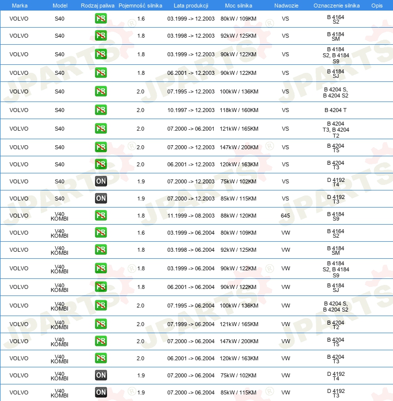 | Strona zabudowy: | Oś przednia |
