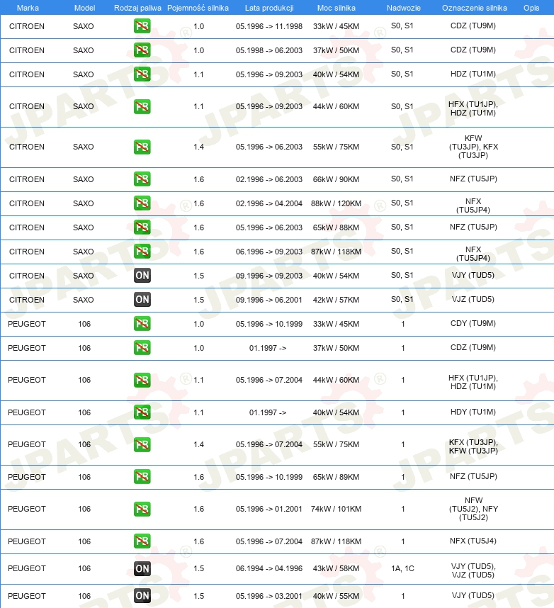 DLA NUMERU OE: