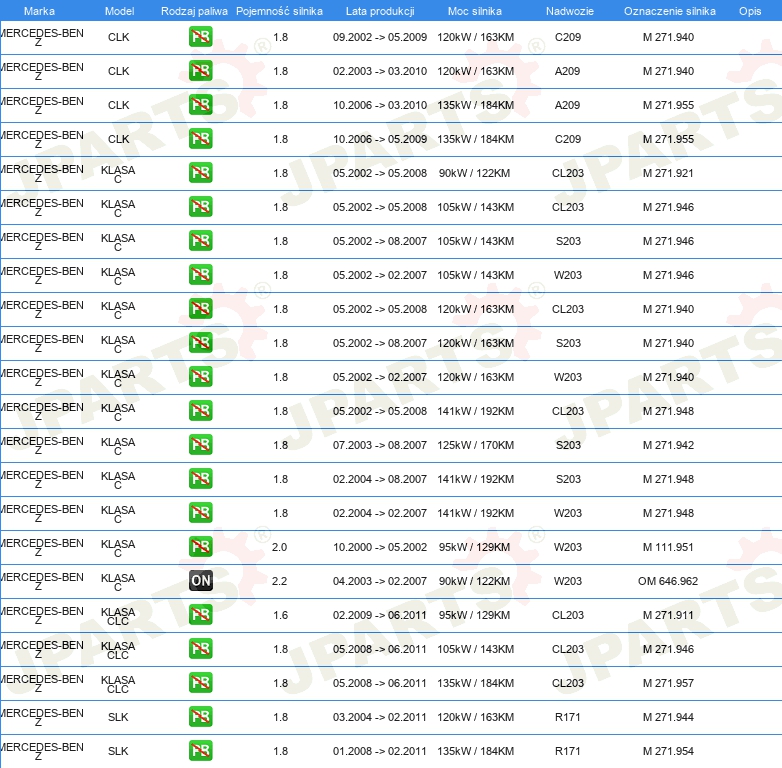 | Pojazd z kierownicą po lewej /prawej stronie: | dla pojazdów z kierownicą z lewej / prawej strony |