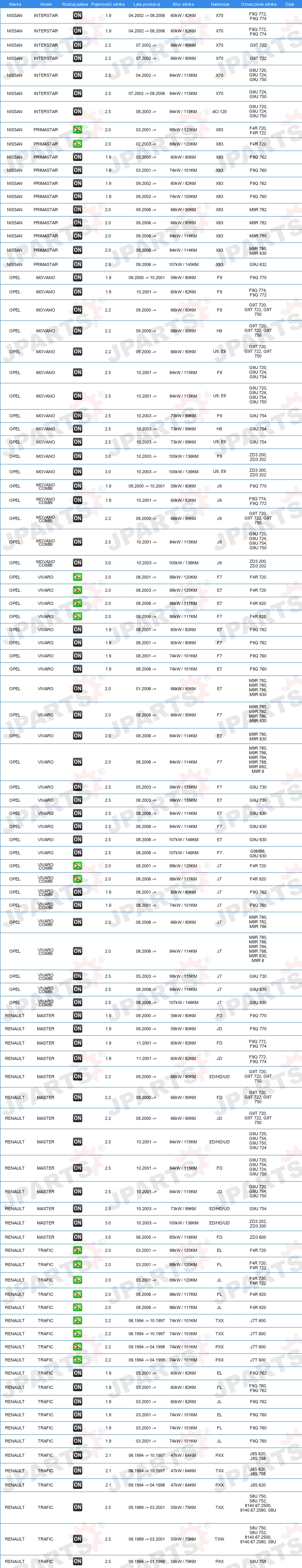 | Pojazd z kierownicą po lewej /prawej stronie: | dla pojazdów z kierownicą z lewej / prawej strony |