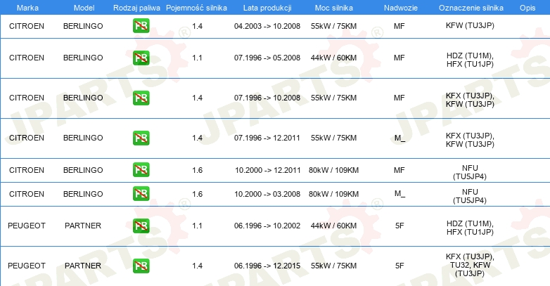 | Pojazd z kierownicą po lewej /prawej stronie: | dla pojazdów z kierownicą z lewej / prawej strony |