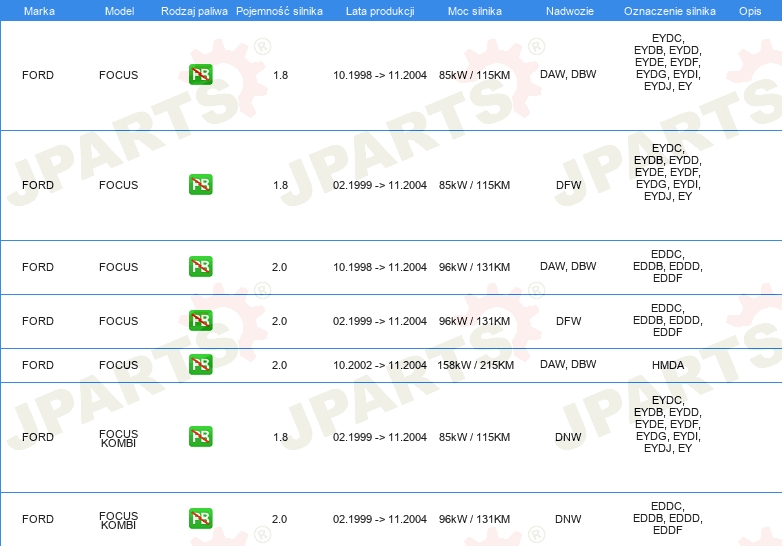 | Pojazd z kierownicą po lewej /prawej stronie: | dla pojazdów z kierownicą z lewej / prawej strony |