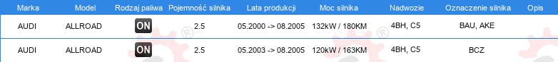 | Przestrzegaj danych technicznych: | Cena za 1 sztukę, należy kupić 2 sztuki |