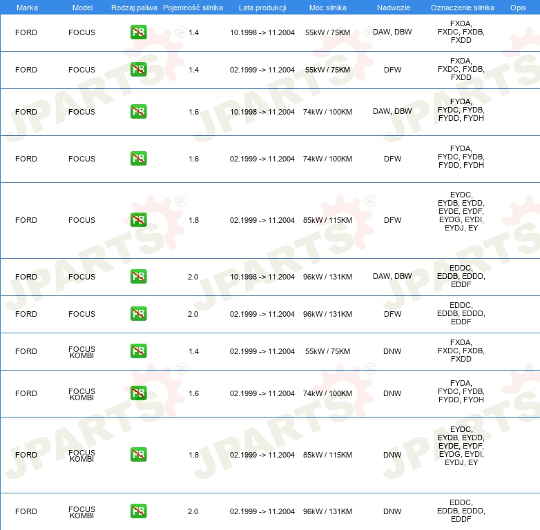 | Pojazd z kierownicą po lewej /prawej stronie: | dla pojazdów z kierownicą z lewej / prawej strony |