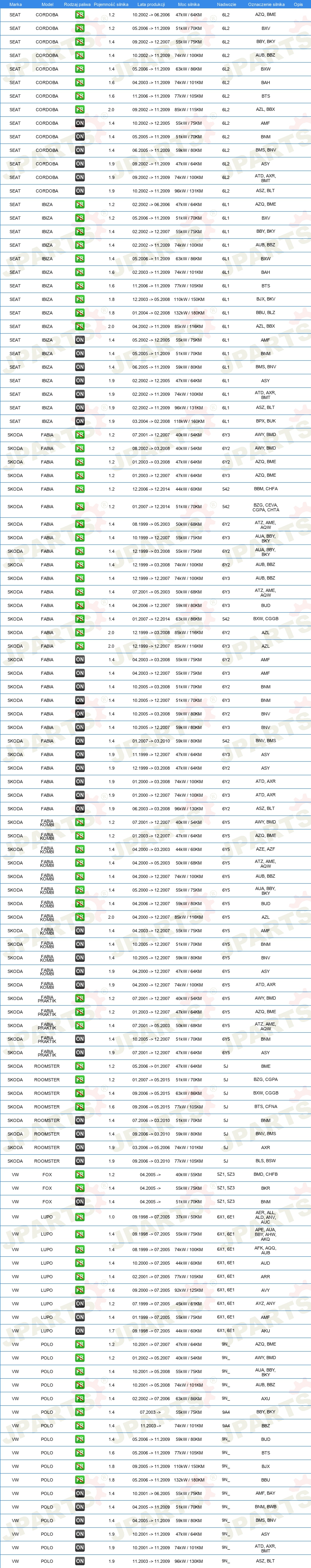 | Pojazd z kierownicą po lewej /prawej stronie: | dla pojazdów z kierownicą z lewej / prawej strony |