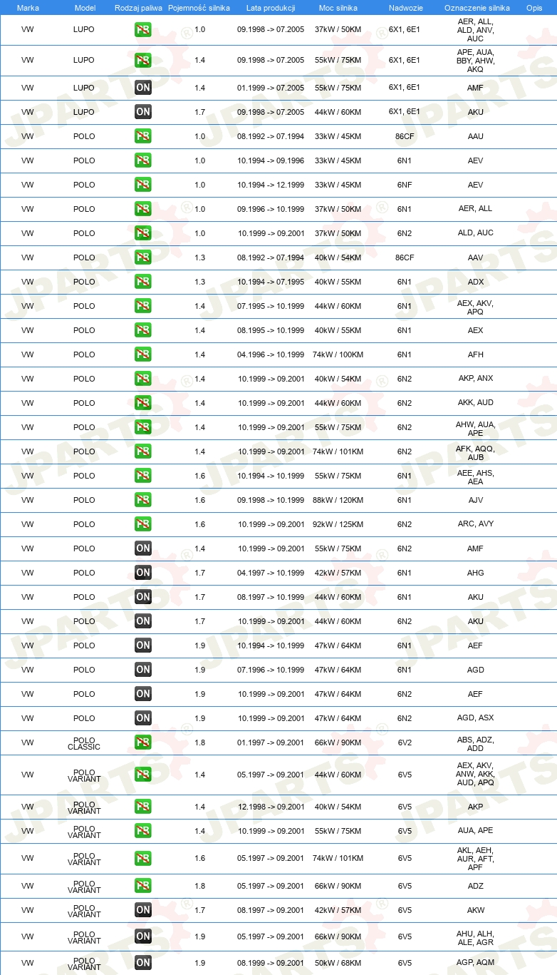 | Pojazd z kierownicą po lewej /prawej stronie: | dla pojazdu z kierownicą z lewej strony |