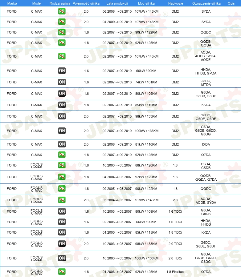 | Pojazd z kierownicą po lewej /prawej stronie: | dla pojazdu z kierownicą z lewej strony |