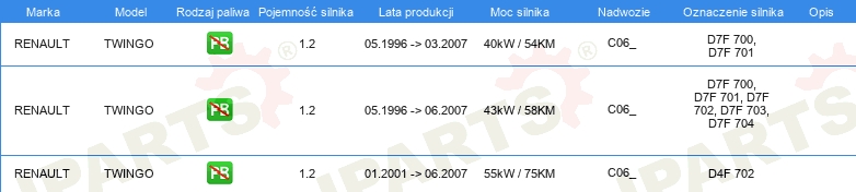 Informacje o części