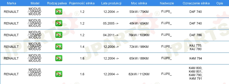 Informacje o części