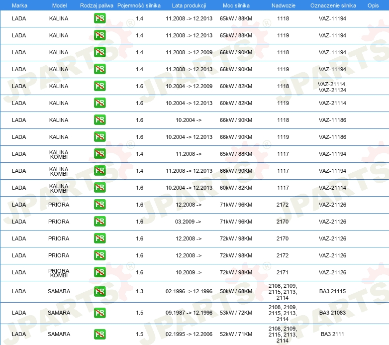| Artykuł uzupełniający / informacja uzupełniająca: | bez czujnika poziomu paliwa |