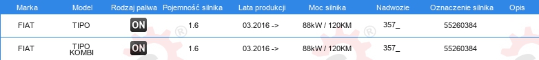 Dodatkowe informacje katalogowe