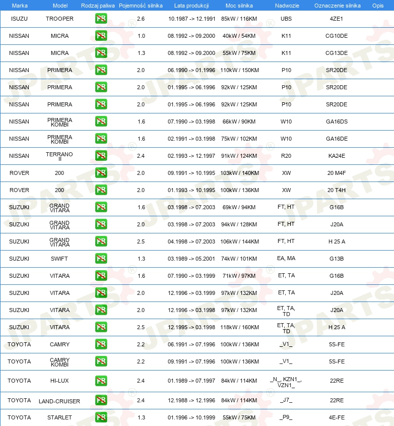 | Układ wtryskowy: | Wtrysk wielopunktowy (MPI) |