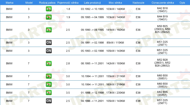 Informacje o części