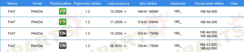 Informacje o części