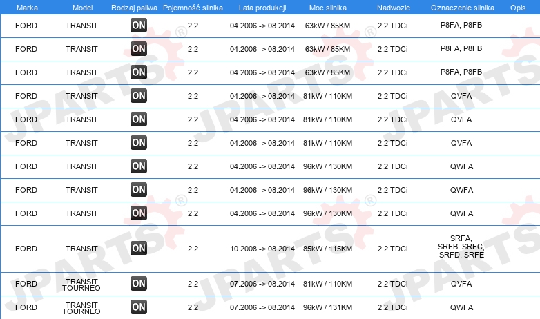 | Rodzaj skrzyni biegów: | dla automatyki skrzyni 5-biegowej |
