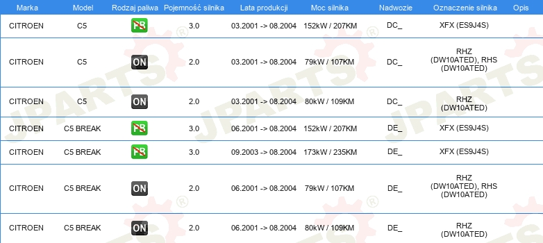 | Strona zabudowy: | Oś przednia |