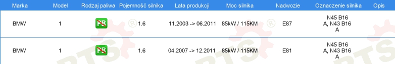 Informacje o części