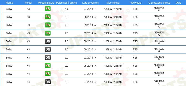 | Strona zabudowy: | oś tylna |