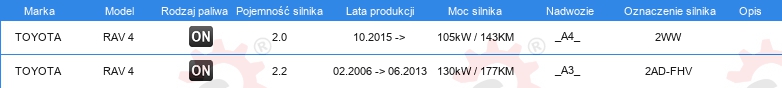 Dodatkowe informacje katalogowe
