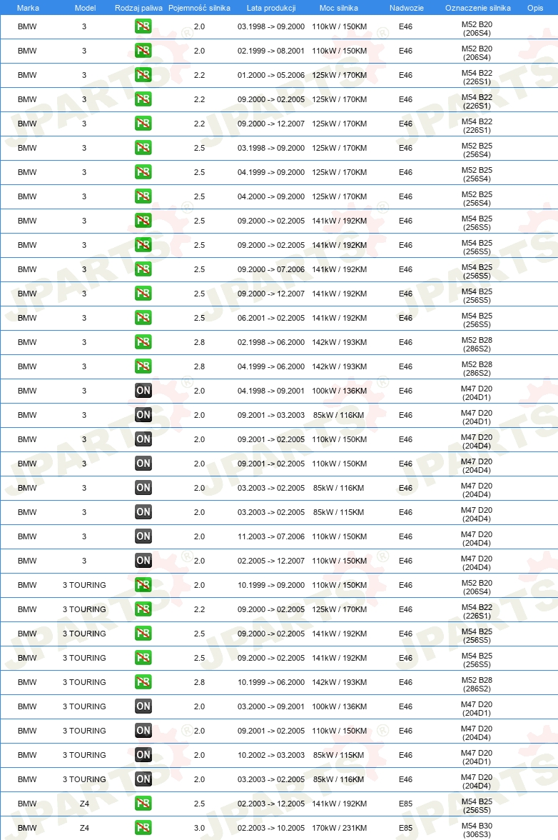| Strona zabudowy: | tył lewy |