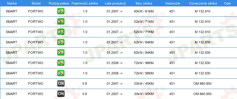 | Strona zabudowy: | tył lewy |