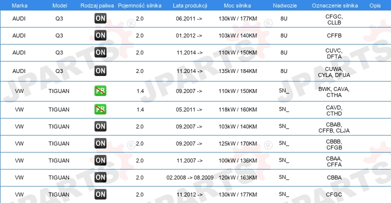 | Strona zabudowy: | z przodu z prawej |