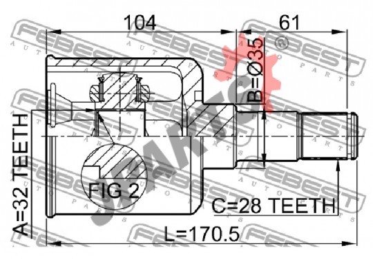 | Wewnętrzne uzębienie, od strony skrzyni: | 28 |
