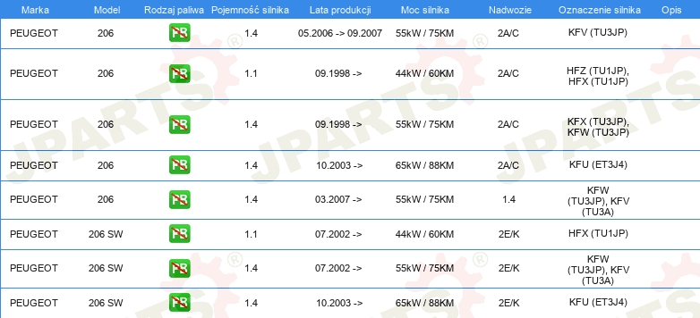 | Strona zabudowy: | oś przednia |