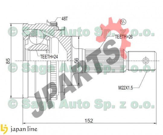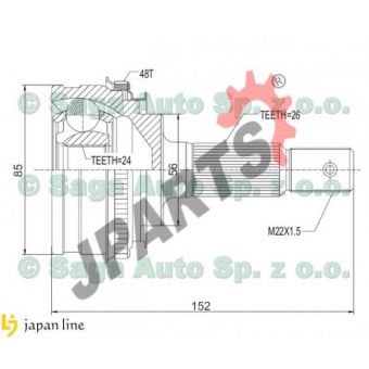 | Zewnętrzne uzębienie, od strony koła: | 26 |