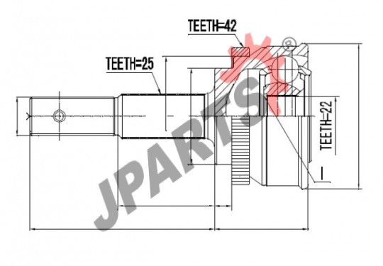 | Zewnętrzne uzębienie, od strony koła: | 25 |