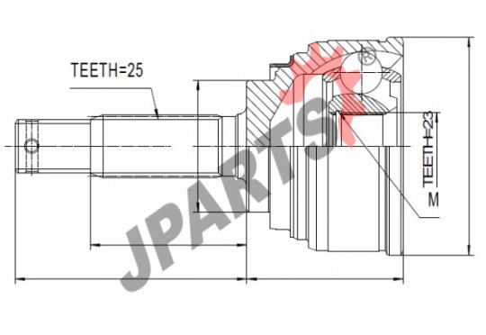 | Zewnętrzne uzębienie, od strony koła: | 25 |
