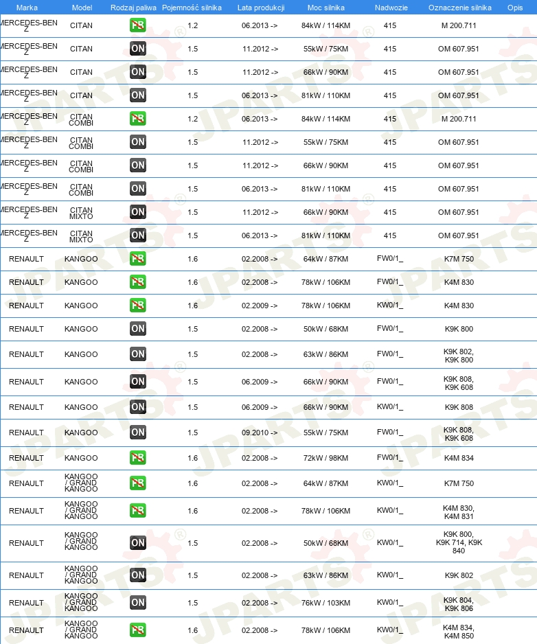 | Strona zabudowy: | prawa / lewa |