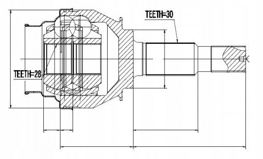 | Wewnętrzne uzębienie, od strony koła: | 28 |