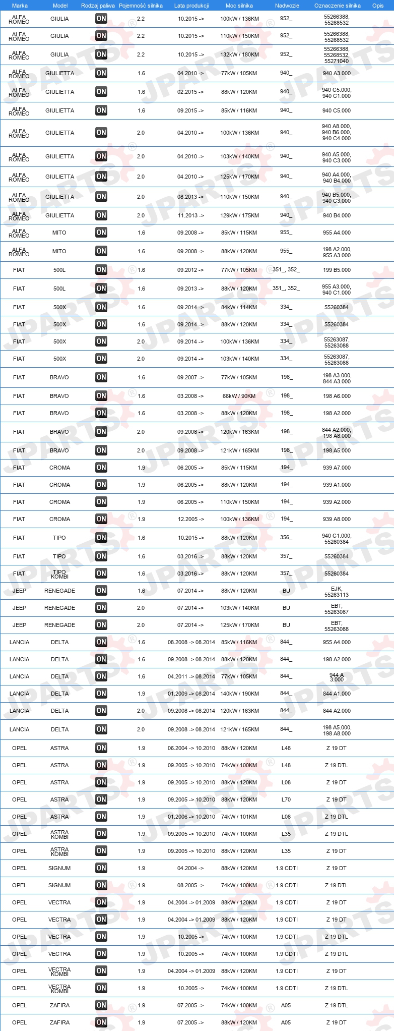 | Wyposażenie pojazdu: | dla pojazdów bez funkcji Start-Stop |